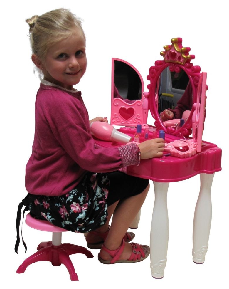 Sprookjesachtige kapperstafel, inclusief haardroger, toverstaf en mp3-aansluiting. Voor echte prinsesjes!