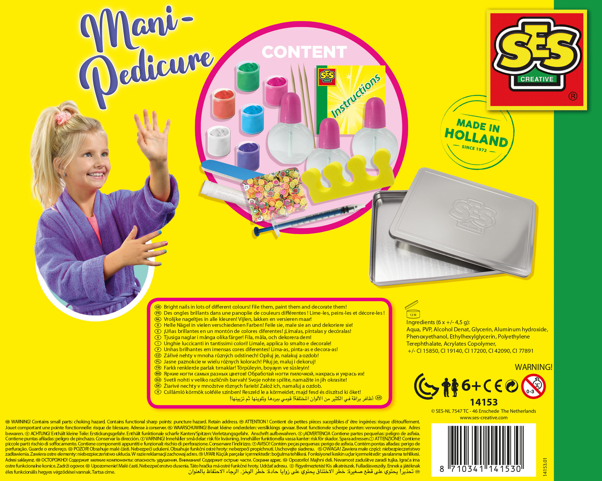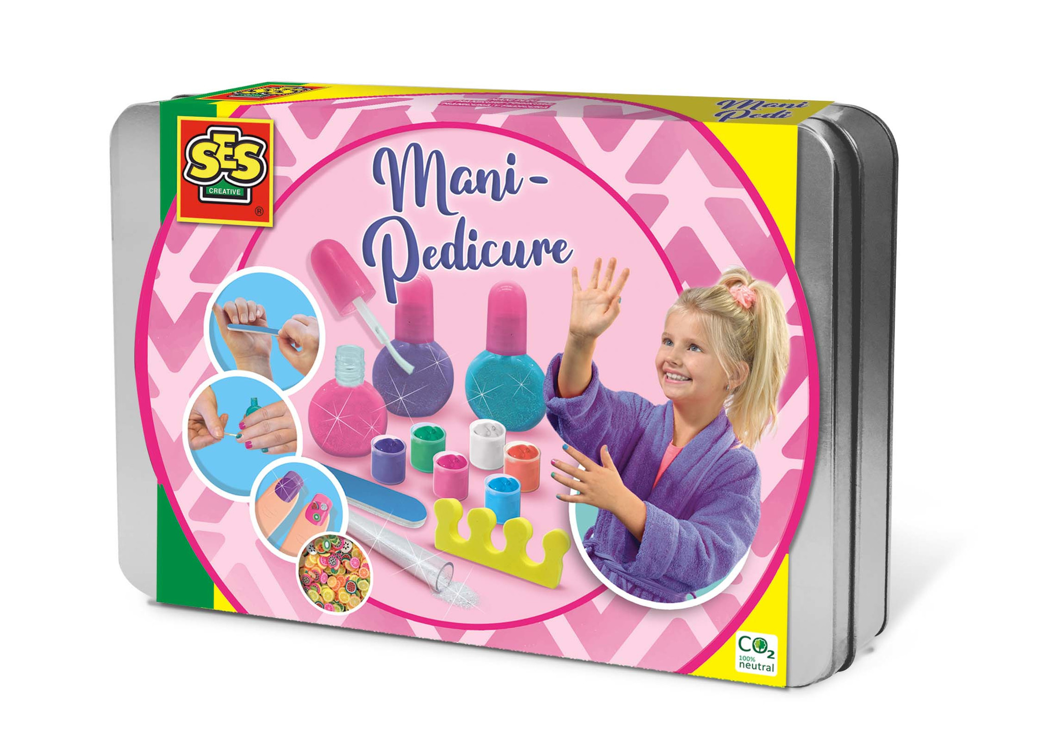 Met deze luxe Mani- pedicure set van SES Creative heb je altijd mooi verzorgde nagels. Vul de nagellakpotjes met de kleur die jij op je nagels wil hebben. Meng verschillende kleuren en voeg eventueel glitter toe. Vijl je nagels glad en lakken maar! Versier je gelakte nagels met fruit confetti voor een extra kleurrijk resultaat. Vanaf nu ben jij je eigen manicure en pedicure in één! Cosmetisch getest.