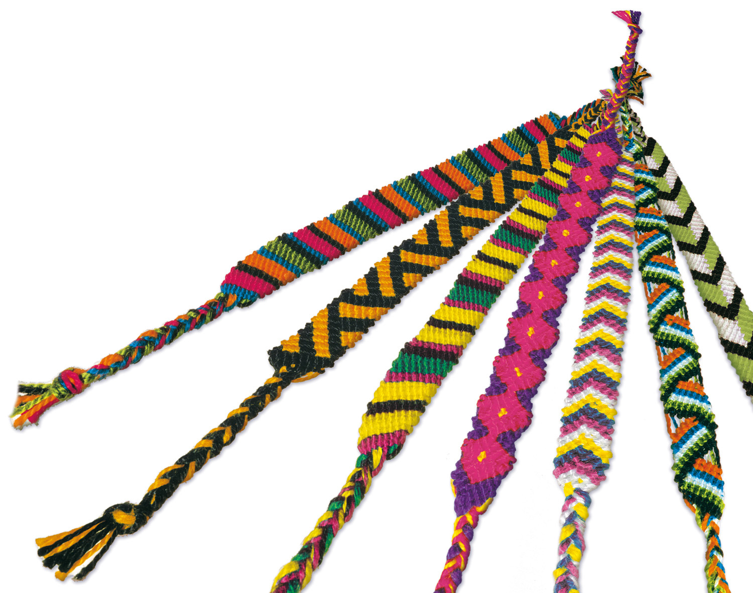 Maak je eigen Vriendschaps Armbandjes. Complete set om armbandjes e knopen. Met garen in 13 verschillende kleuren en decoratieve kralen. Gedetailleerde instructies met 200 illustraties. Geschikt voor kinderen vanaf 6 jaar.