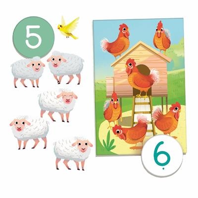3 verschillende spelmodi: het stimuleert de observatie- en associatievaardigheden en leert het eerste concept van wiskunde. In modi 2 en 3 wordt het spel gespeeld met hoeveelheden en getallen. Kinderen tellen de dieren op een tegel en matchen ze met he