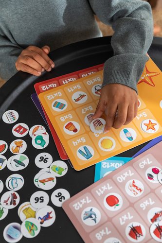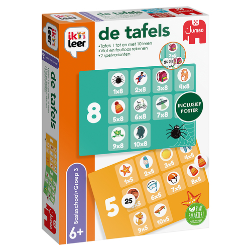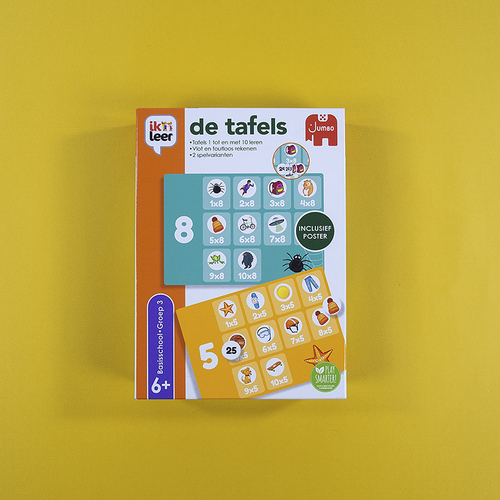 Leer met behulp van 2 spelletjes en de poster de tafels van 1 tot en met 10. Weet jij de antwoorden op de sommen? Zoek de juiste getal-fiches en leg ze op de kaart. Controleer je uitkomst door het fiche om te draaien. Komt het plaatje overeen? Dan is het antwoord goed!