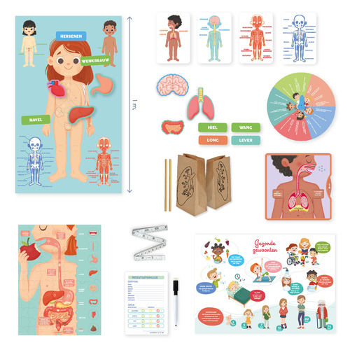 Dit spel voor kinderen van 4 tot 7 jaar bestaat uit een doos met materiaal dat hen helpt om via vrij spel de menselijke anatomie te ontdekken. Wij moedigen kinderen aan op spontane wijze, en volgens hun eigen regels en ritme, met het materiaal te experimenteren.