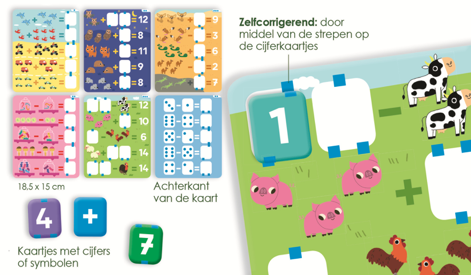 Leer met behulp van de 6 spelletjes eerste sommetjes maken. Om alleen of samen mee te spelen. Met ‘ik leer sommetjes’ leren kinderen spelenderwijs tellen, cijfers en hoeveelheden verbinden, sommen oplossen en rekenen. Weet jij het antwoord op de som? Zo