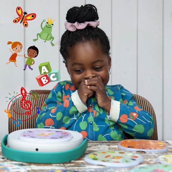 TIMIO is dé schermvrije en educatieve verhalen- en muziekspeler voor kinderen. Met magnetische disks vol kinderliedjes, sprookjes, quizjes, dieren- en andere geluiden ontdekken ki