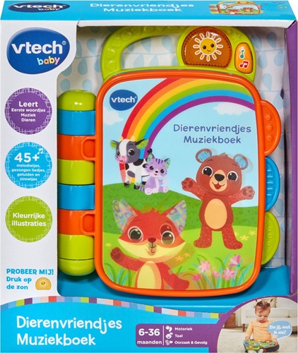 De Vtech Dierenvriendjes Muziekboek is een leuk voorleesboekje. Het boekje speelt leuke geluidjes af en laat je kindje zo kennismaken met de dierenwereld van Vtech. Tip! Leuk om als kraamcadeau te geven.