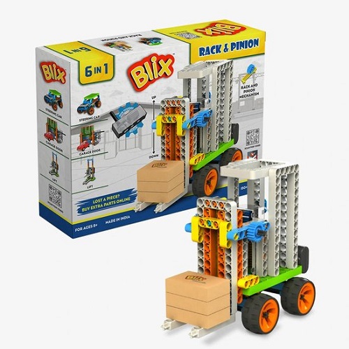 De Blix Rack & Pinion set laat kinderen vanaf 8 jaar op een speelse manier ontdekken hoe draaibeweging wordt omgezet in een rechtlijnige beweging. Met behulp van een motor en tandwielmechanisme leren ze hoe dit systeem in de praktijk wordt toegepast.