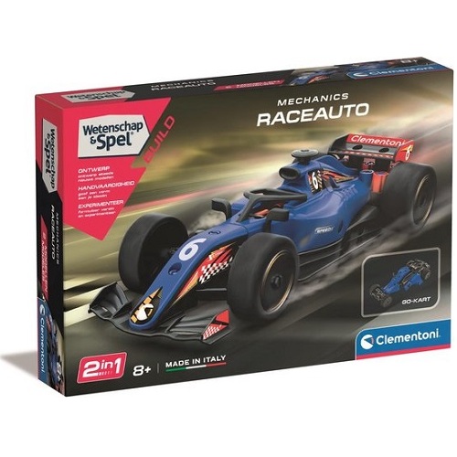 Een in Italië gemaakte montagekit waarmee je veel plezier kunt beleven tijdens het monteren van een raceauto of een go-kart. De kit bevat meer dan 80 onderdelen waarmee 2 verschillende modellen met tandheugelmechanisme en werkend stuur kunnen worden gebou