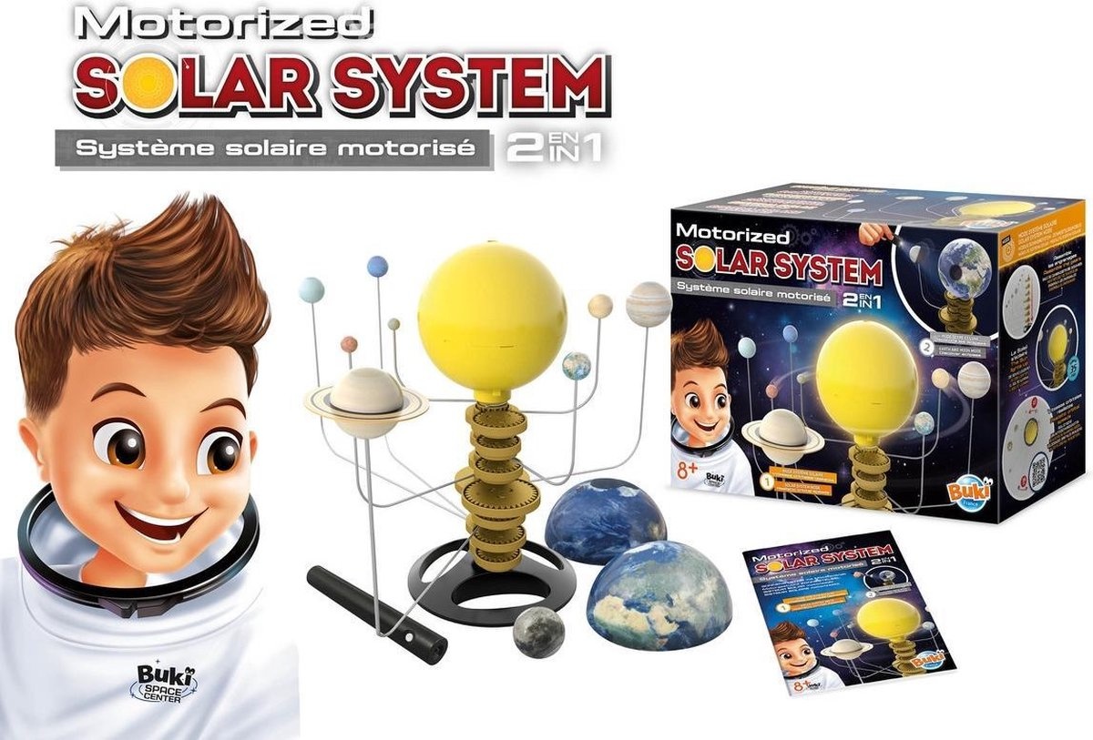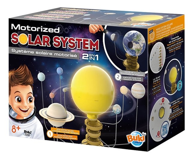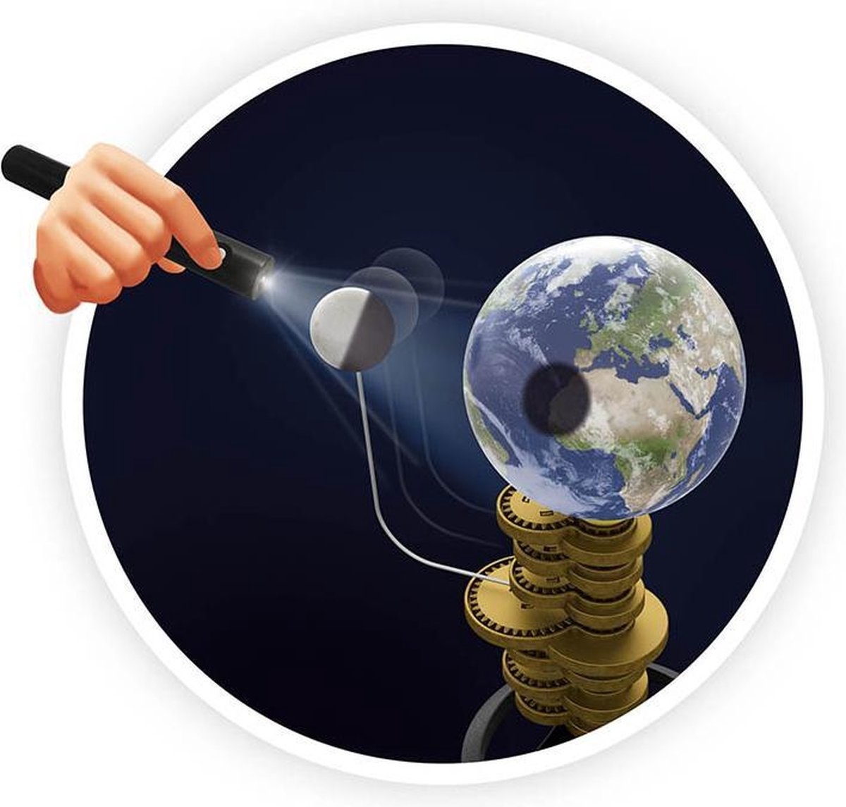 Bouw je model zelf om en vervang de Zon en Planeten door de Aarde en de Maan. Creëer echte maansverduisteringen. De lamp die je hiervoor nodig hebt, zit in het pakket. Met realistische baansnelheden.
