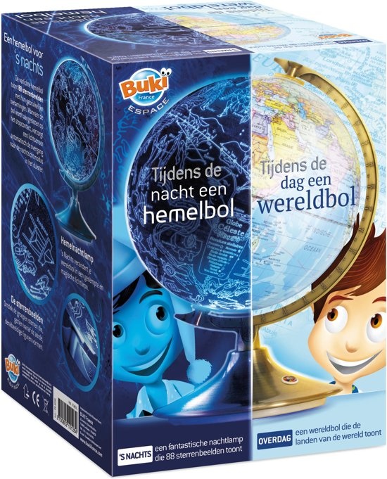 Globe gemonteerd diam. 21 cm op metalen armatuur. Geleverd met een USB-kabel en een voedingsadapter. Eén vervang-LED meegeleverd. Werking overdag: observeer de wereldbol met haar politieke grenzen, zeeën, bergen en steden tijdens de dag. Werking ‘s nac