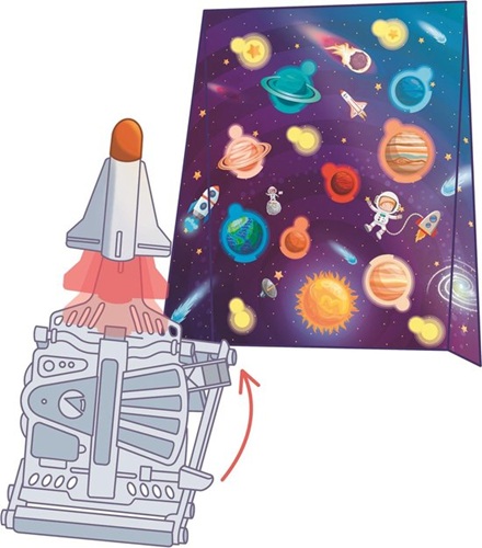 Lanceer de raket via een speciaal mechanisme. Kijk eens hoe hoog hij gaat! Met de geïllustreerde handleiding komt je kind alles te weten over de ruimte. Nog niet uitgespeeld? Dan kan hij of zij ook nog een uniek sterrenstelsel maken met de Glow in de Dark-elementen.