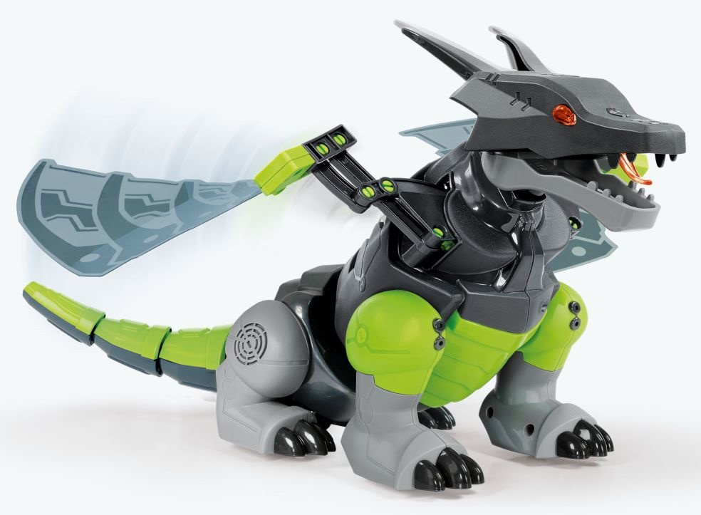 De Draak kan worden bediend met een app die communiceert met hoogfrequente signalen, met het fluitje dat inbegrepen is, of met een simpel handgeklap. Met 2 motoren en de servomotor beweegt hij zijn vleugels en bek, het aandrijfwiel en de koppeling midd