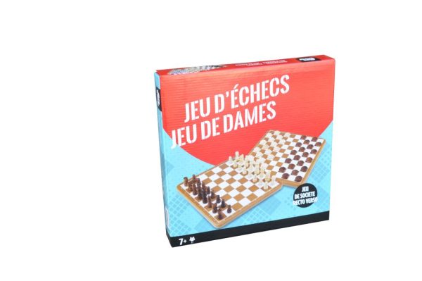 Dam- & Schaakbord in hout (31,3x31x4cm) - Afbeelding 2