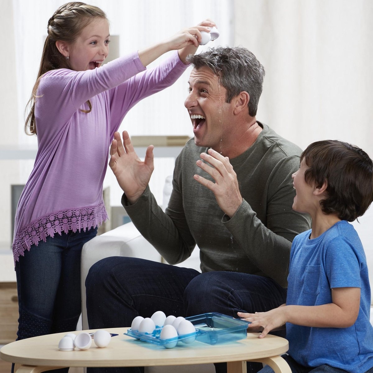 EI-hoofd is een spannend en superleuk spel waarbij spelers om de beurt een plastic ei kiezen en op hun hoofd drukken. Maar wat ze niet weten is: welke is gevuld met water, en welke niet? De spelers die een nat EI-hoofd krijgen, zijn af. De laatste spel