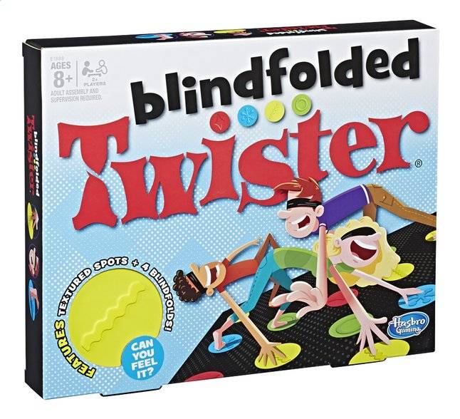 Het spel waarvan je letterlijk in de knoop komt te liggen, maar dan met blinddoeken en voelbare vormen. Dus: nu nog meer pret met een vleugje mysterie! In Twister Blindfolded verplaats je je nog steeds over de stippen van de mat, maar dan net even ande