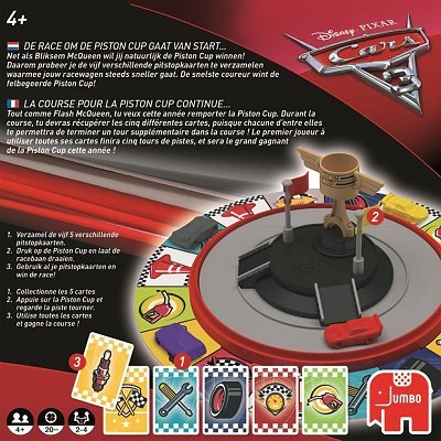 Gooi de dobbelsteen en race over de racebaan! Verzamel de pitstopkaarten langs de weg, druk op de Piston Cup en laat de racebaan draaien. Ga jij als eerste met piepende banden over de finish!