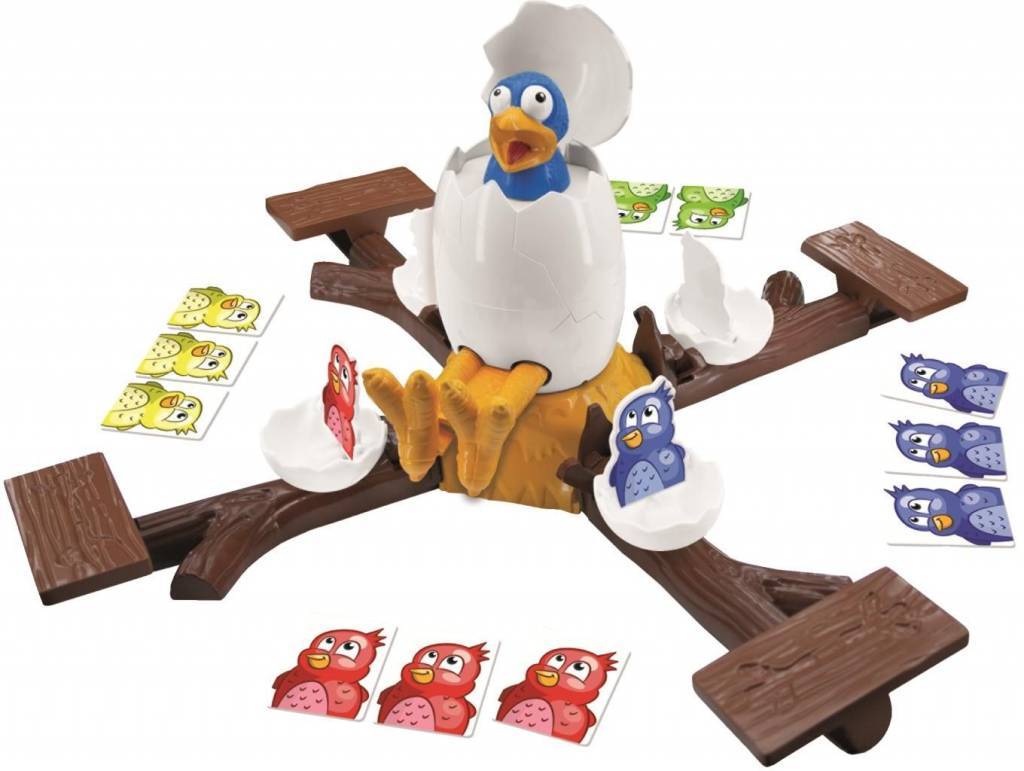 Vier kleine vogeltjes zitten op een tak naast een groot ei. Dit ei kan elk moment uitkomen en dan schiet de dolgedraaide Karel Koekoek tevoorschijn! Pas dus op, want Karel Koekoek duwt jouw vogeltje zo van zijn tak! Dan ben je een kaartje kwijt. Gelukk