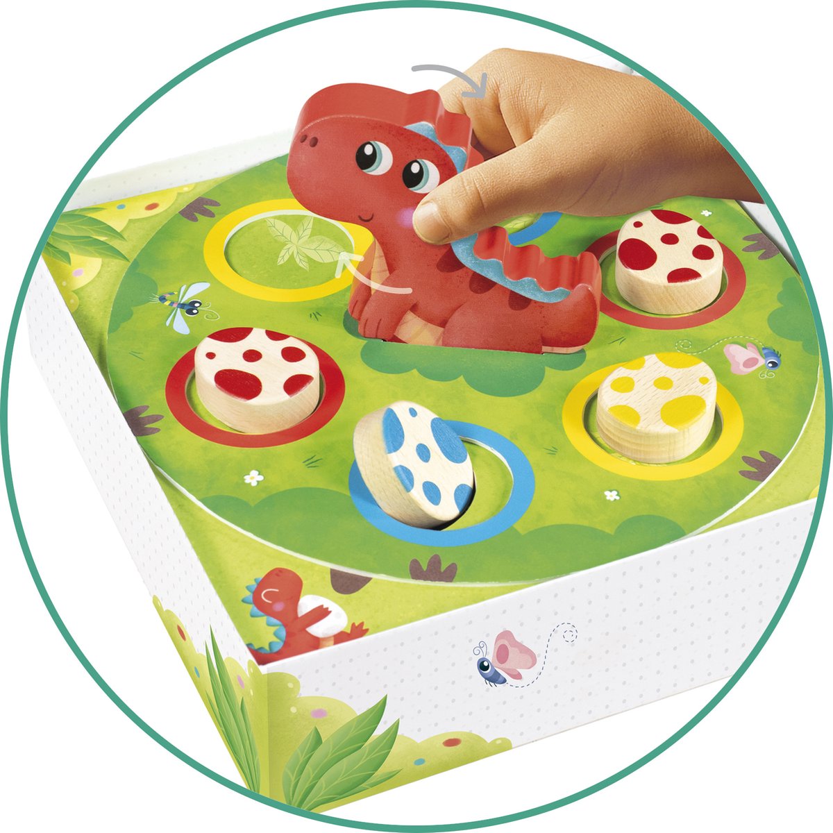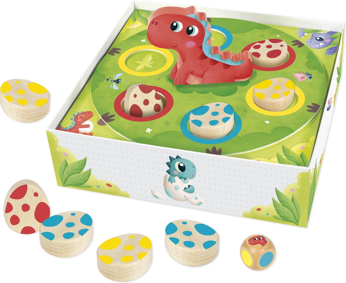 In dit leuke spel beginnen kinderen aan een avontuurlijke zoektocht om moeder-dinosaurus haar verloren eieren te vinden! Dit coöperatieve spel, ontworpen voor 1 tot 3 spelers, is perfect voor jonge dinosaurusliefhebbers en bevordert teamwork en samenwerking terwijl ze samenwerken om een gemeenschappelijk doel te bereiken. Het doel van het spel is om alle 9 eieren te verzamelen en ze terug in het nest te leggen voordat de tijd om is.