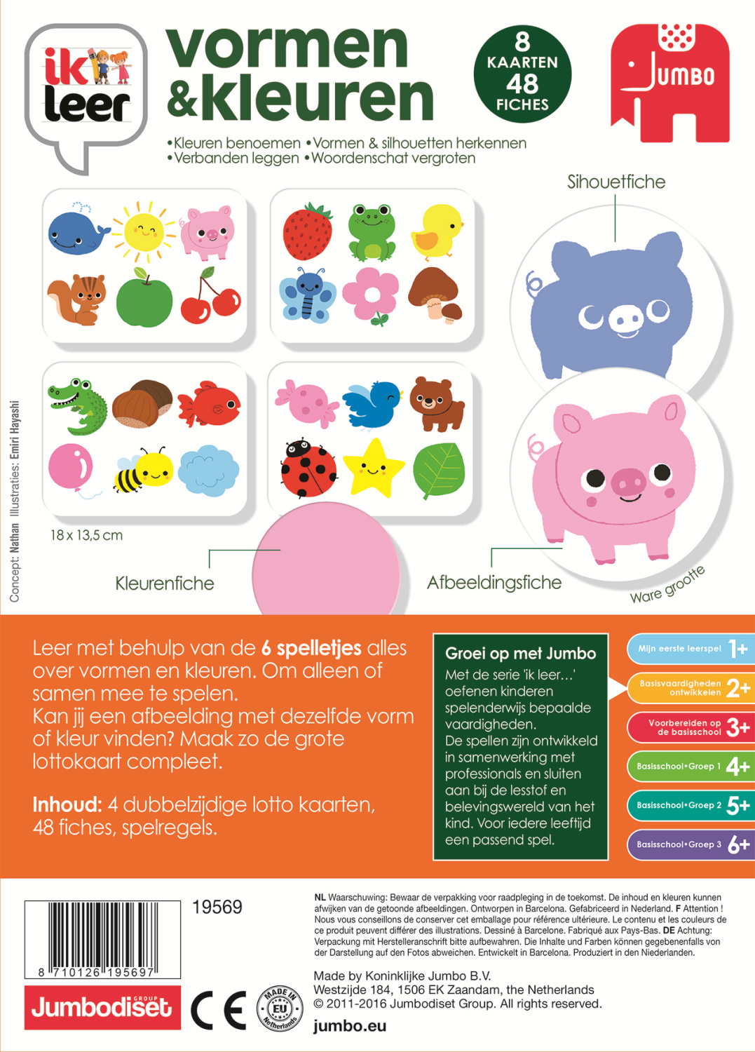 Leer met behulp van de 6 spelletjes alles over vormen en kleuren. Om alleen of samen mee te spelen. Met ‘ik leer vormen & kleuren’ leren kinderen spelenderwijs kleuren benoemen, vormen & silhouetten herkennen, de woordenschat vergroten en verba