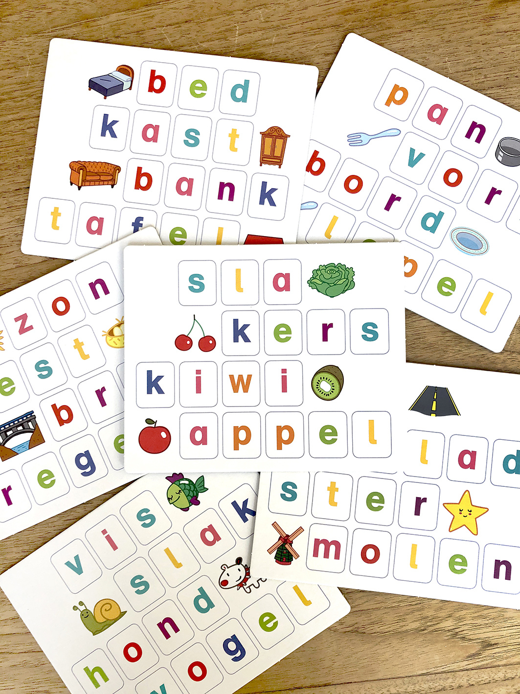 Leer met behulp van de 6 spelletjes eerste woordjes spellen. Om alleen of samen mee te spelen. Met ‘ik leer woordjes’ leren kinderen spelenderwijs letters herkennen, woordjes spellen, lezen en de woordenschat vergroten. De woordjes bestaan uit 3, 4 of 5