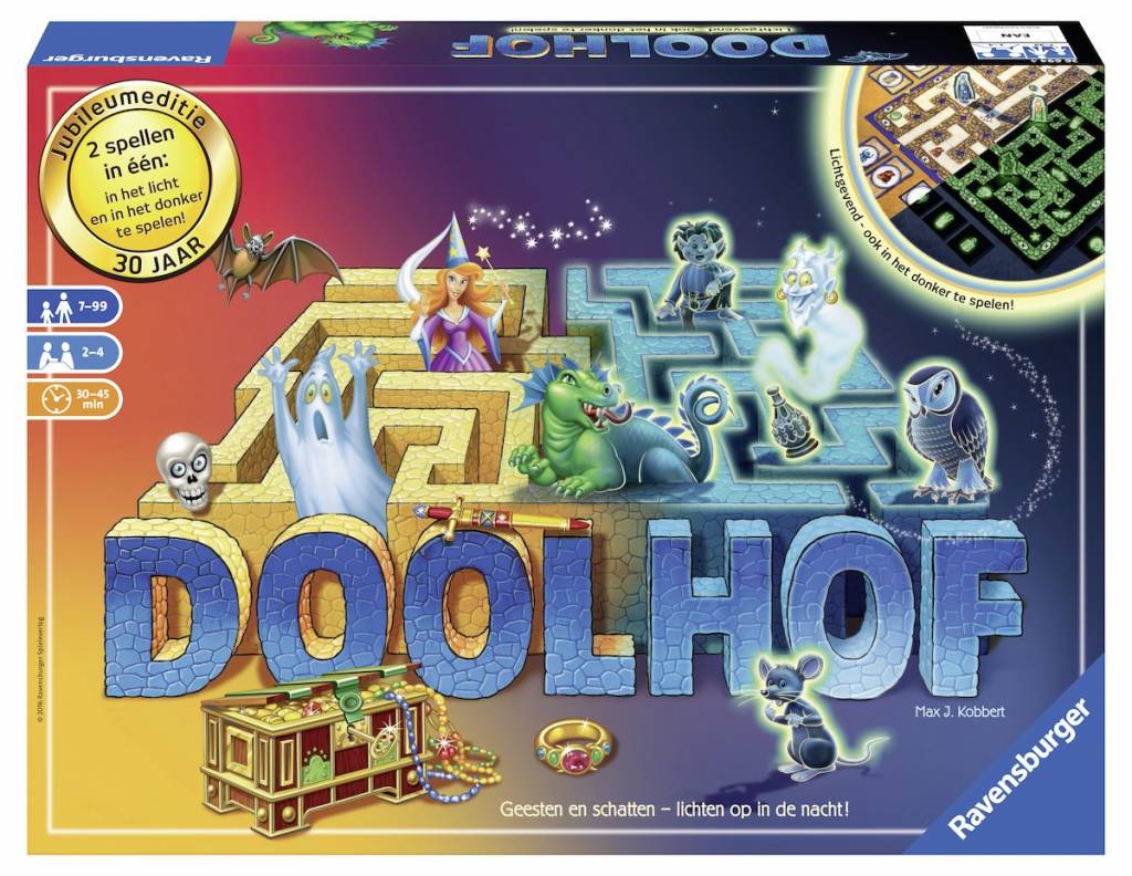 Doolhof – de Ravensburger klassieker met het magische spelbord. Al 30 jaar verschuiven miljoenen mensen de gangen en zoeken ze naar schatten. En nu kun je voor het eerst het doolhof ook in het donker spelen! Nieuwe schatten komen uit het niets tevoorschijn en de gangen lichten op: een fascinerende ervaring die kleine en grote spelers versteld laat staan!