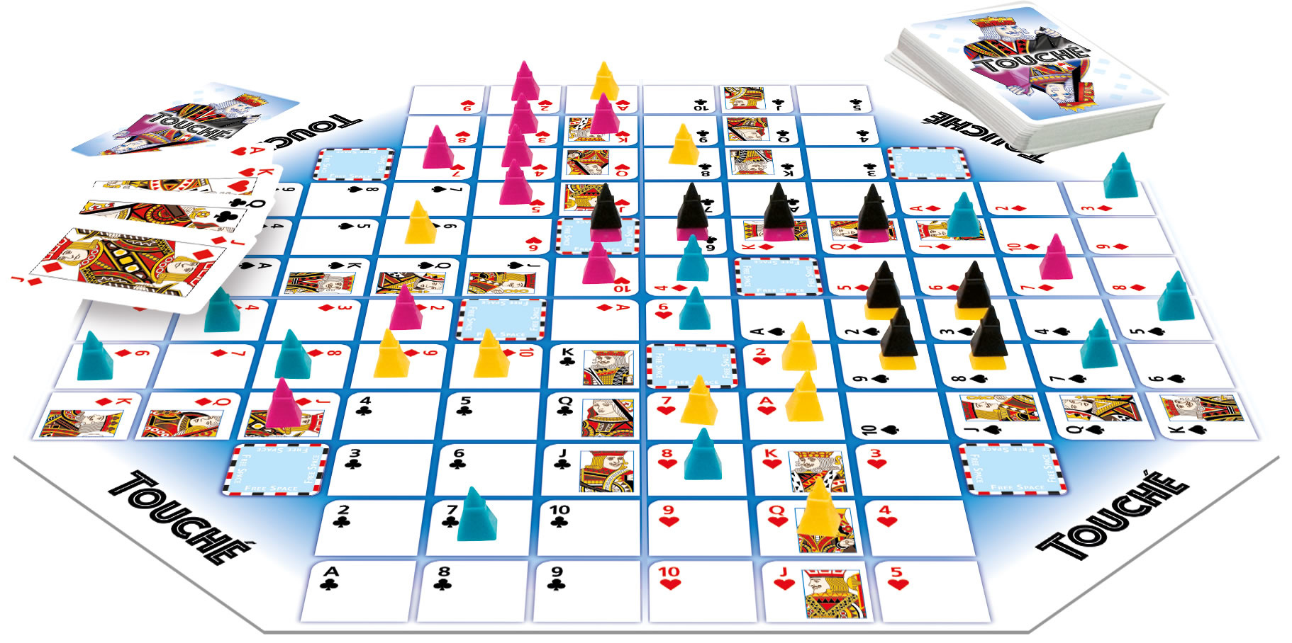 Touché is een bijzonder en opwindend spel voor de hele familie. Het vraagt om een goed overzicht, tactiek, maar ook een beetje geluk. De spelers proberen verschillende figuur-combinaties op het speelbord te vormen met hun piramide je kaarten bepalen waar een piramide geplaatst mag worden. Als een bepaalde combinatie gevormd is, roep je Touché. Nieuwe combinaties kunnen gevormd worden tot het vooraf afgesproken aantal bereikt is. Degene die de meeste combinaties gevormd heeft, is winnaar van het spel.