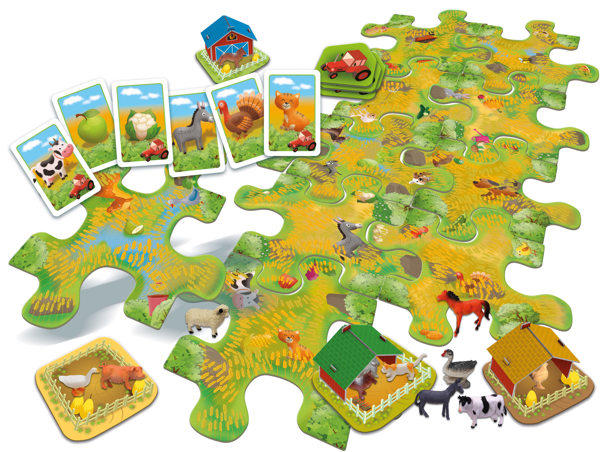 Kun jij snel de verborgen dieren vinden? Speur het speelbord af dat iedere keer anders is! Hola! De slordige boer heeft de staldeur open laten staan: alle dieren zijn ontsnapt en hebben zich ergens verstopt. Jullie moeten ze zoeken! Zoek de koeien, de k