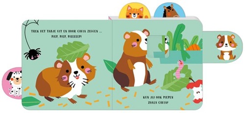 Trek aan de tabs en een knotsgek avontuur vol dierengeluiden begint! Zeg hallo tegen hondje en zijn vriendjes en doe vrolijk mee met hun woef woef, miauw miauw en piep piep. Een interactief voorleesboek vol humor en geluid, met een verrassend einde dat elk kind laat rollen van het lachen!