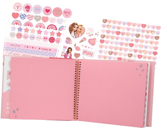 Voor de mooiste foto’s: het TOPModel fotoalbum heeft 32 blanco roze pagina’s en 6 stickervellen om de ingeplakte herinneringen te versieren. Er zijn een aantal leuke ontwerpideeën ter inspiratie.