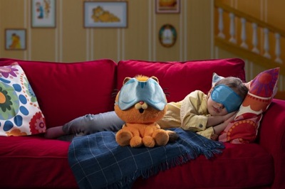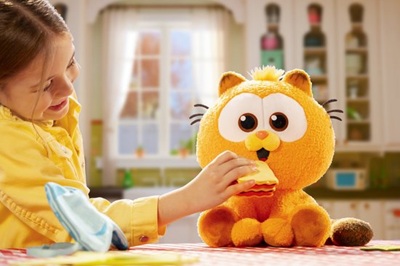 Ontmoet Baby Garfield. In de nieuwe Garfield film wordt ook Baby Garfield geïntroduceerd. En ook Baby Garfield is al groot fan van lasagne. Deze feature pluche van Animagic kun je dan ook de lasagne voeren. Wanneer je de meegeleverde lasagne voor de mond