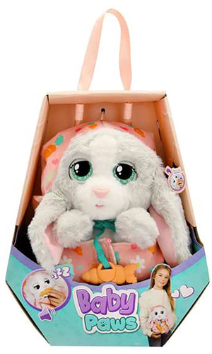 Baby Paws Bunny is het nieuwe lid van de Baby Paws familie! Dit schattige konijntje houdt van wortels en heeft een superzachte vacht met grote oren, waardoor het net een echt konijntje is! Bunny ligt heerlijk te slapen in een oranje dekentje bedrukt met b