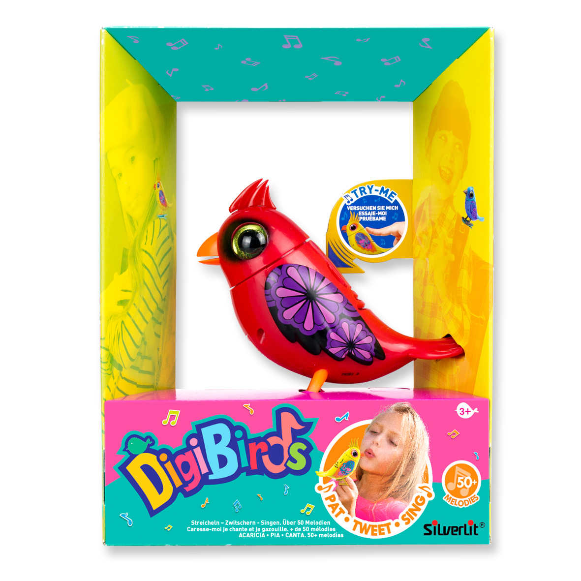 De vrolijke Digibirds zijn eindelijk terug!! Ze zijn groter en nog levendiger dan vroeger. We zijn terug en willen graag met jou spelen! Aai me en ik zal tweeten. En als je naar me fluit, zal ik 1 van mijn 50 favoriete melodietjes voor je zingen. Je kunt