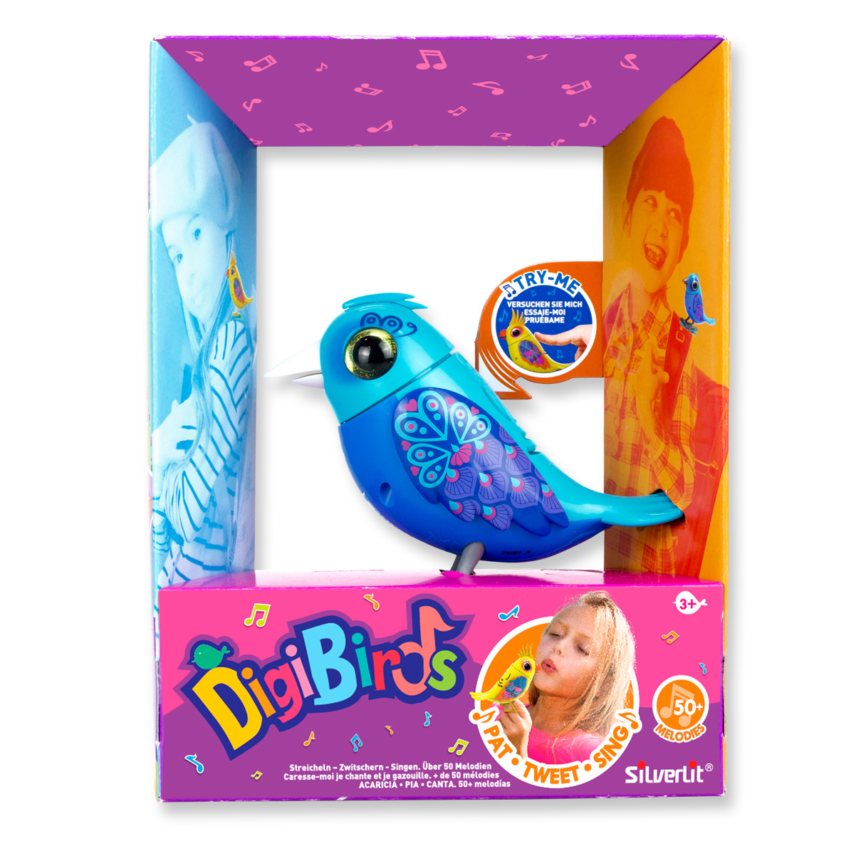 De vrolijke Digibirds zijn eindelijk terug!! Ze zijn groter en nog levendiger dan vroeger. We zijn terug en willen graag met jou spelen! Aai me en ik zal tweeten. En als je naar me fluit, zal ik mijn favoriete melodietjes voor je zingen. Je kunt zelfs teg
