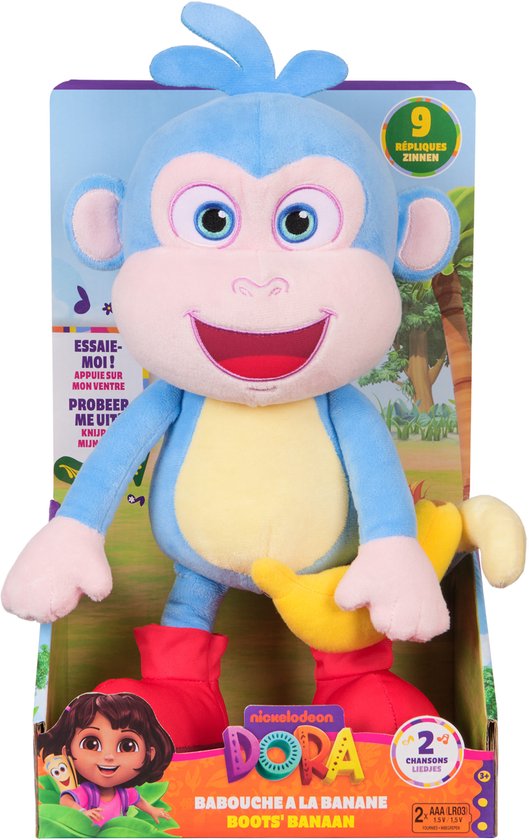 Boots slingert het speelplezier in om te knuffelen en te zingen! Deze schattige pluche knuffel van 33 cm brengt Dora’s beste vriend tot leven, met banaan-tastische details die fans geweldig zullen vinden. Hij praat Nederlands en heeft zachte blauwe vacht