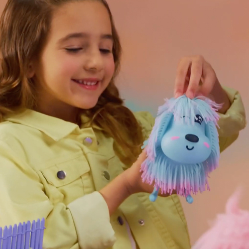 Deze schattige, blauwe Jiggly Pets Pup kan blaffen, lopen en schudden met zijn kop op het ritme van zijn muziek! Maak je klaar om eindeloos te spelen met je nieuwe vriend! Je pup heeft een coole gezichtsuitdrukking en laat grappige muziek horen. Druk op het hoofd om je pup tot leven te brengen. Hij kwispelt met zijn staart en maakt vrolijke pasjes. WAUW! deze pup heeft het meest springerige, super coole, wiebelende haar, waaraan je kunt trekken! Neem je vriend overal mee naartoe. Afmeting pup: 16 x 9 x 16 cm (lxbxh). Leeftijdsindicatie: 4 jaar+.