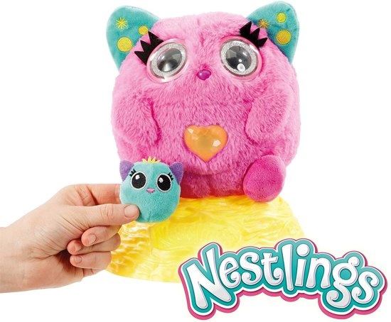 Verzorg je Nestling! Als je genoeg aandacht geeft aan je knuffel, baart hij een eitje met een kleine Nestling. Als je de Nestling op zijn hoofd, neus of buikje aanraakt, of een kleine Nestling dichtbij houdt, reageert ze met geluid en licht.