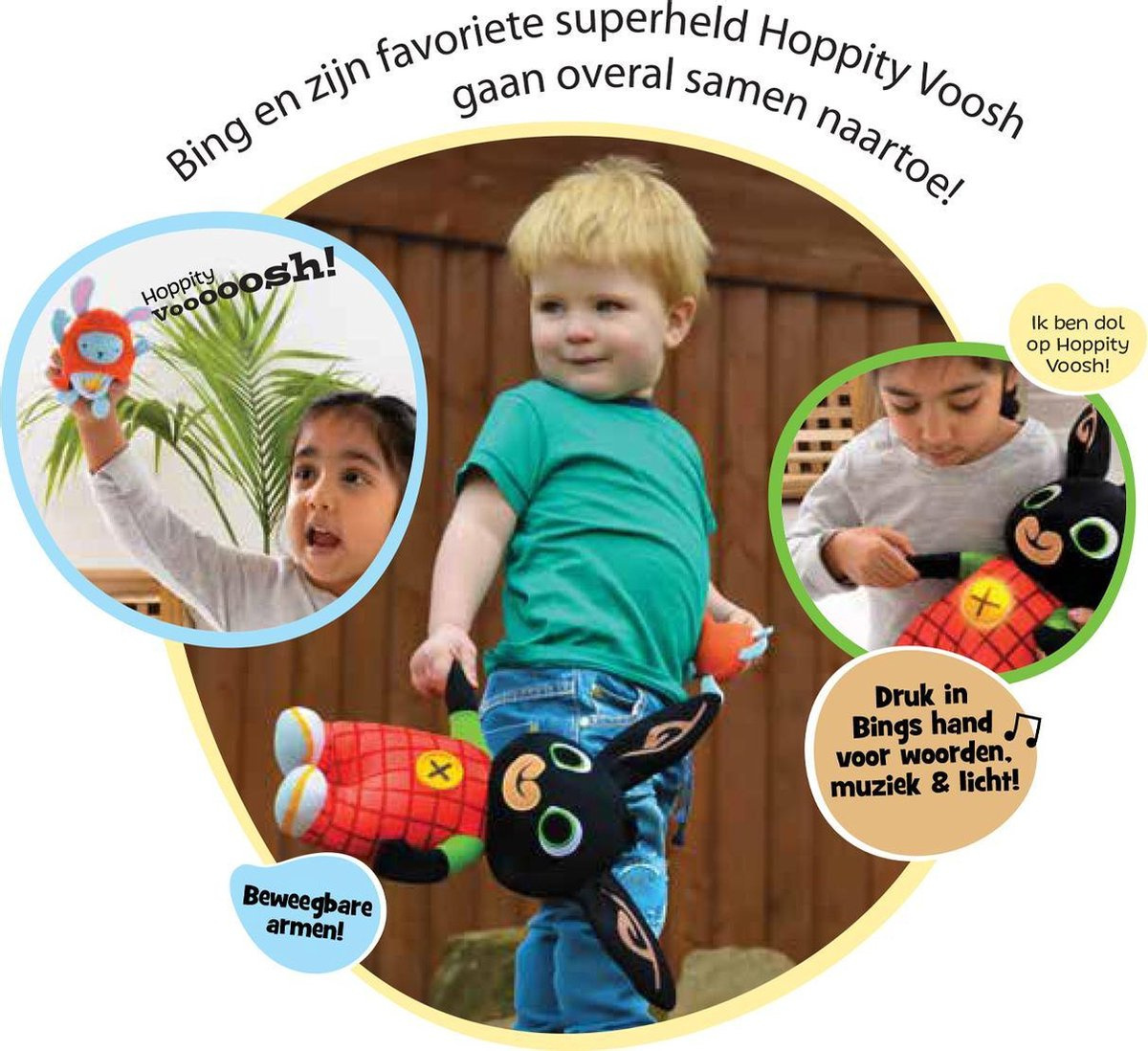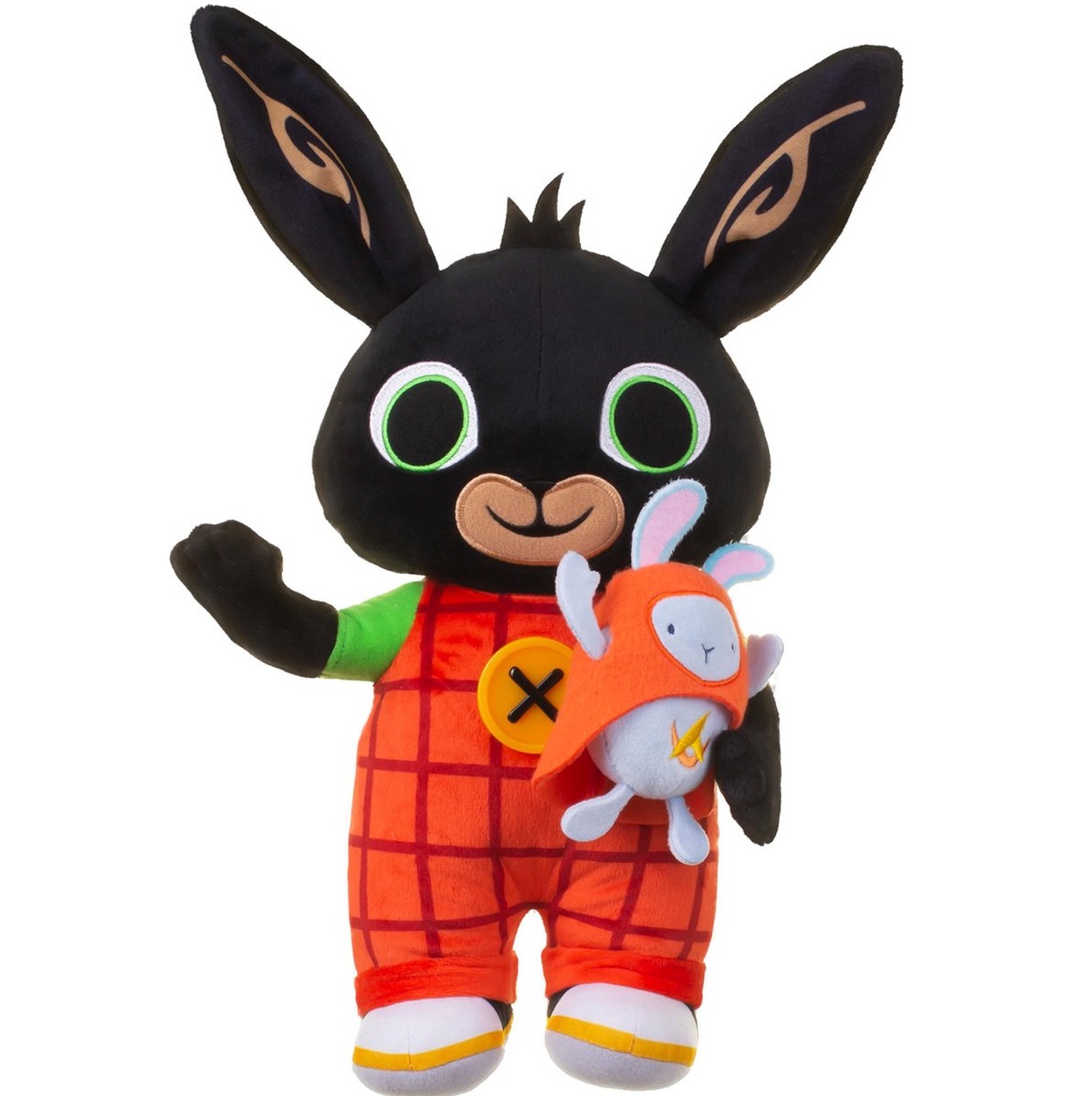 Kijk jij ook altijd naar de avonturen van Bing en zijn vriendjes? Dan ben je vast ook dol op deze Pratende Bing knuffel! Natuurlijk draagt hij zijn stoere rode, geruite tuinbroek met button, net zoals in de animatieserie. En kijk eens wie hij bij zich
