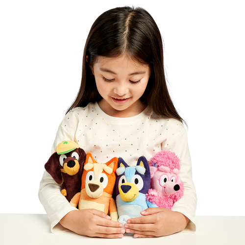 Kijk jij ook altijd naar de avonturen van Bluey? Bluey is een 6 jaar oude Heeler-hond die samen met haar familie de leukste avonturen beleeft. Speel nu zelf met deze kleine pluchen Coco knuffel, de goede vriendin van Bluey. Ze is superzacht en wil heel graag met jou knuffelen! Coco is ca. 20 cm hoog. Leeftijdsindicatie: 3 jaar+