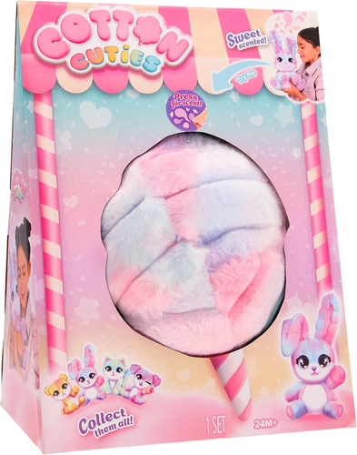 Ontdek de schattige en superzachte Cotton Cuties Bunny! Deze donzige knuffel ziet eruit én ruikt als een heerlijke suikerspin! Je Bunny is gemaakt van extra zacht materiaal in allerlei pasteltinten en heeft grote ogen die je vrolijk aankijken. Cotton Cuties Bunny is 30 cm hoog. De verpakking verraadt de mooie roze/blauw/witte kleuren, maar je moet je Bunny unboxen voor het eindresultaat! Het zachte en kwalitatieve materiaal is perfect om mee te knuffelen, dus neem je Cotton Cutie Bunny overal mee naartoe! Leeftijdsindicatie: 2 jaar+.