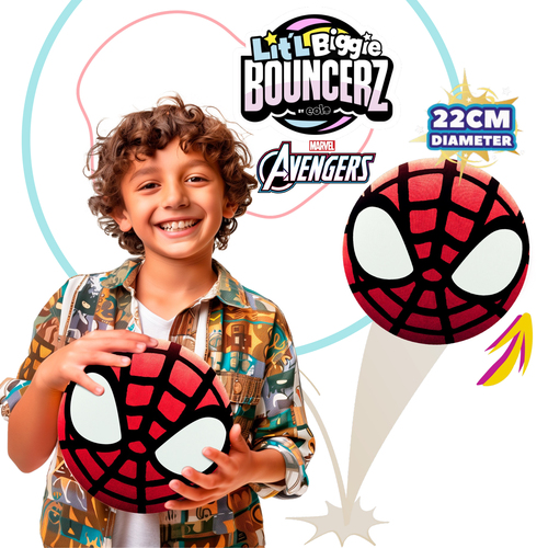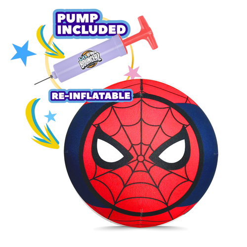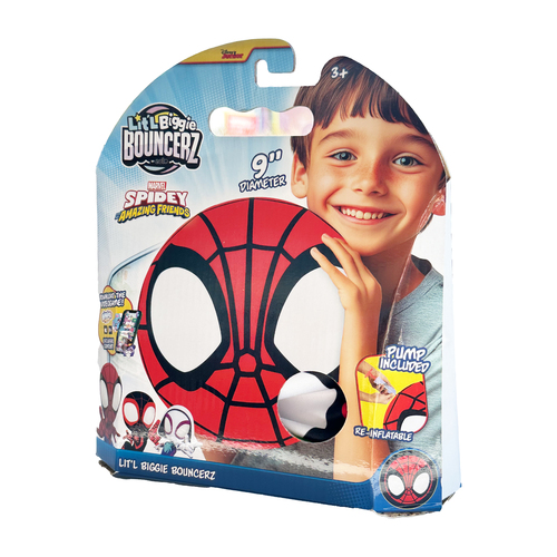 De Lit’l Biggie Bouncerz Spiderman is een knuffelbal gemaakt van zacht materiaal. De Biggie Bouncer wordt geleverd met een handpomp zodat je de bal kunt oppompen als je hem uit de verpakking hebt gehaald of gebruik hem als de bal iets zachter is geworden. Lit’l Biggie Bouncerz moedigt actief spelen aan en is de ultieme pluchen vriend voor eindeloos binnen- en buitenspeelplezier! De bal heeft een omtrek van 22 cm. Er zijn ook Little Biggie Bouncerz beschikbaar van Stitch en een voetbal. Leeftijdsindicatie: 3 jaar+.