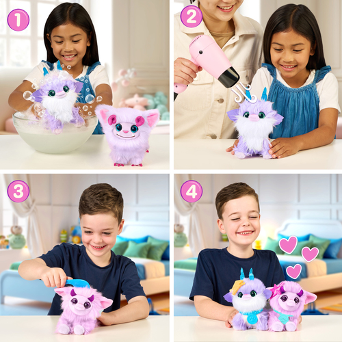 Was, föhn en style jouw mysterieuze Scruff a Luvs Twin Fantasy knuffels tot twee zachte knuffelvriendjes!