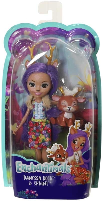 ​Laat je betoveren door Danessa Hert pop en haar vriendinnetje Sprint. De Enchantimals-poppen, een clubje leuke meiden die een speciale band hebben met hun dierenvriendjes, zijn altijd samen en lijken zelfs op elkaar! De 15 cm grote pop wordt geleverd