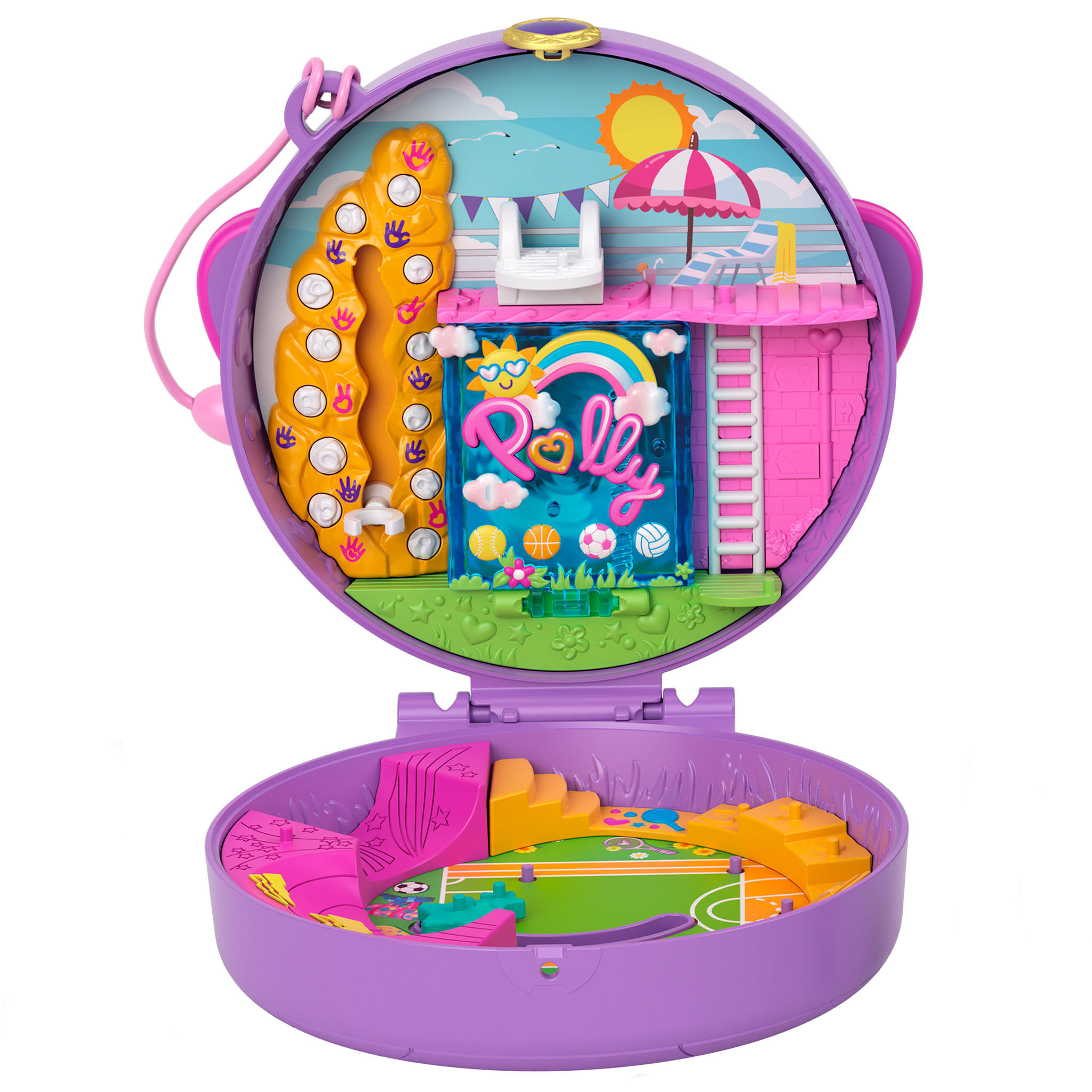 Ben jij klaar voor een spannende wedstrijd met Polly Pocket? Deze compacte speelset Voetbalploeg ziet eruit als een voetbal met een grappige zonnebril en is gevuld met glitters die je kunt schudden. Een perfecte set om thuis en onderweg mee te spelen.