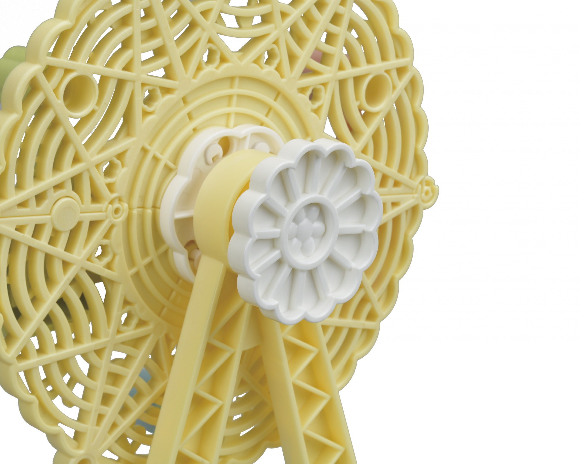 Het baby reuzenrad kan worden gedraaid door het handvat vast te houden en dan te draaien om zo de ronde basis te laten bewegen.