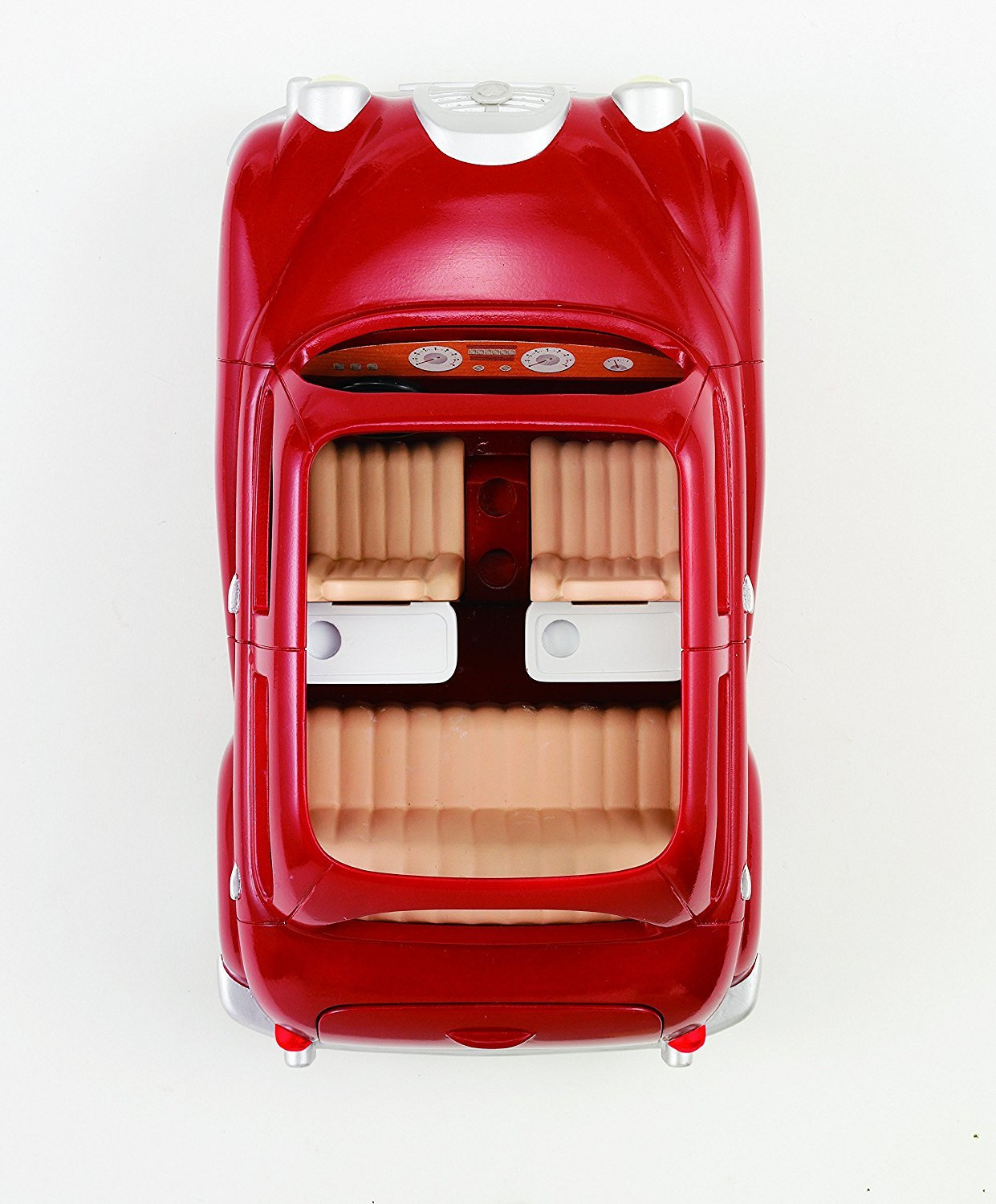De Sylvanian Families poppenauto is mooi speelgoed voor kinderen. Toet toet! De Salonwagen voor de Familie is een stijlvol, retro voertuigje, perfect voor een familie van vier. Deze prachtige tomatenrode wagen in vintage-stijl is ideaal voor uitstapjes met de familie. De auto heeft een babystoeltje voor de kleinsten van de groep en er zit ook een heerlijke picknickset bij met broodjes en vruchtensap! De voorbumper kan uitgetrokken worden, er komt dan een heuse picknicktafel te voorschijn en er zijn 2 plateaus die aan de ruime wagen vastgemaakt kunnen worden als ze niet gebruikt worden. De bestuurder in de auto zit rechts en de auto heeft een Sylvanian kentekenplaat. Een tripje naar zee of naar het platteland is zo gemaakt. Als je van reizen houdt, is het Bagagerek met Picknickset een perfecte toevoeging aan deze Sylvanian auto!