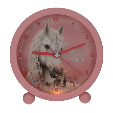 Tijd voor Miss Melody: met deze wekker is het ineens leuk om op te staan. Op het wijzerblad zie je een schattige afbeelding van een paard en katten. De behuizing is roze, de wijzers zijn van metaal en bewegen geluidloos. De wekker heeft een alarm- en lichtfunctie. In de wekker past een AA batterij (1,5 V), deze is niet ingesloten).