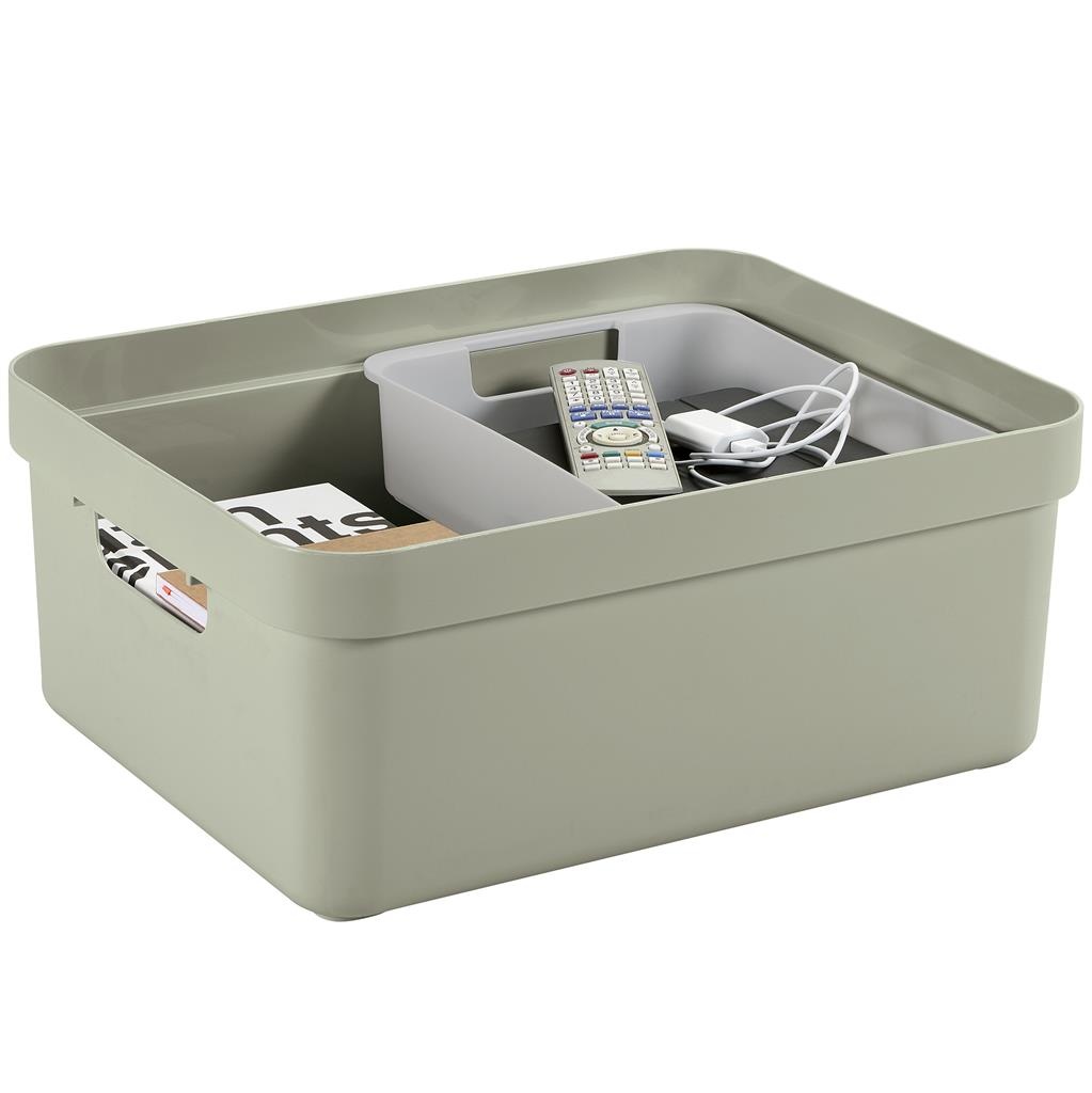 Maak kennis met deze stijlvolle, trendy opbergboxen die gezien mogen worden. Onze Sigma home opbergboxen hebben een modern, hoogwaardig design meegekregen en zijn daardoor uiterst geschikt om in de woonkamer te plaatsen. Deze 24 liter box is bijvoorbeeld geschikt voor het opbergen van rondslingerend speelgoed, je breiwerk en bollen wol, of voor het opbergen van je favoriete boeken, kranten en magazines. Er zijn eindeloos veel toepassingen te bedenken aangezien we allemaal wel spullen hebben rondslingeren in de huiskamer! Alle Sigma home opbergboxen hebben geïntegreerde handgrepen waardoor je ze makkelijk kunt dragen. Daarnaast hebben ze een soft-touch look & feel en zijn ze mét deksel perfect stapelbaar. Je creëert je eigen opbergbox op maat door het kiezen van een leuk decoratief deksel welke los verkrijgbaar zijn. Geef je interieur een boost met onze Sigma home opbergboxen!
