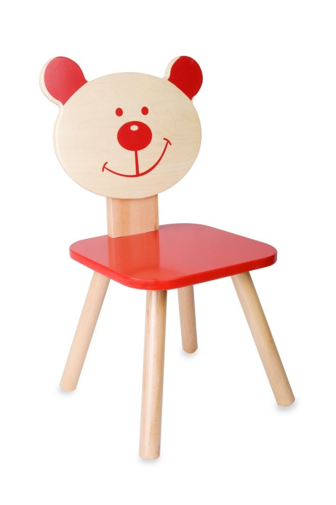 Schattig berenstoeltje, rood. Eenvoudig en aantrekkelijk design. De gladde randen houden je kind veilig. Perfect voor kleuters.