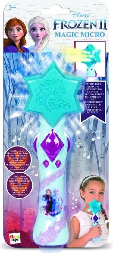 Houd jij van zingen en van Frozen II? Zing dan je favoriete liedjes met deze Frozen II microfoon! Natuurlijk staan Elsa en Anna afgebeeld op de microfoon. Met deze Frozen II microfoon met lichteffect en melodietjes kun je liedjes inzingen, opnemen en afluisteren. En vond je het resultaat niet mooi genoeg, dan doe je het gewoon nog een keer over! Leeftijdsindicatie: 3 jaar+. Batterij informatie: 3 x LR03 batterijen (niet inbegrepen).