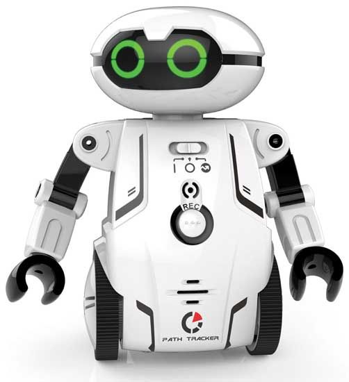 Hij heeft een opname functie, waarmee je telkens tot max. 3 teksten kunt opnemen. De opnames zal hij met robotstem herhalen. Tevens is hij voo