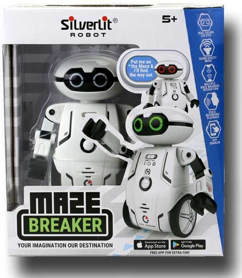 MazeBreaker beweegt zich alle kanten op en zijn ogen geven licht in 2 verschillende kleuren.